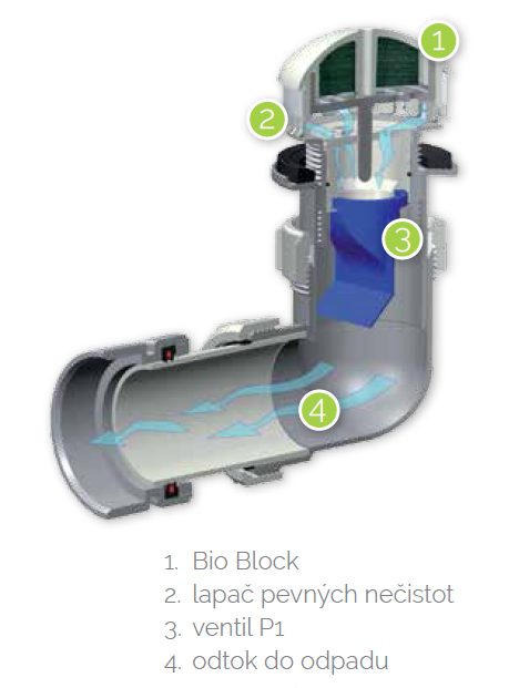Naše patentované ventily P1 jako jediné na trhu účinně zabraňují zápachu minimálně 6 měsíců. Konkurenční ventily se často mění po 1 až 5ti měsících, případně se musí zalévat velkým množstvím vody či speciální olejové náplně.