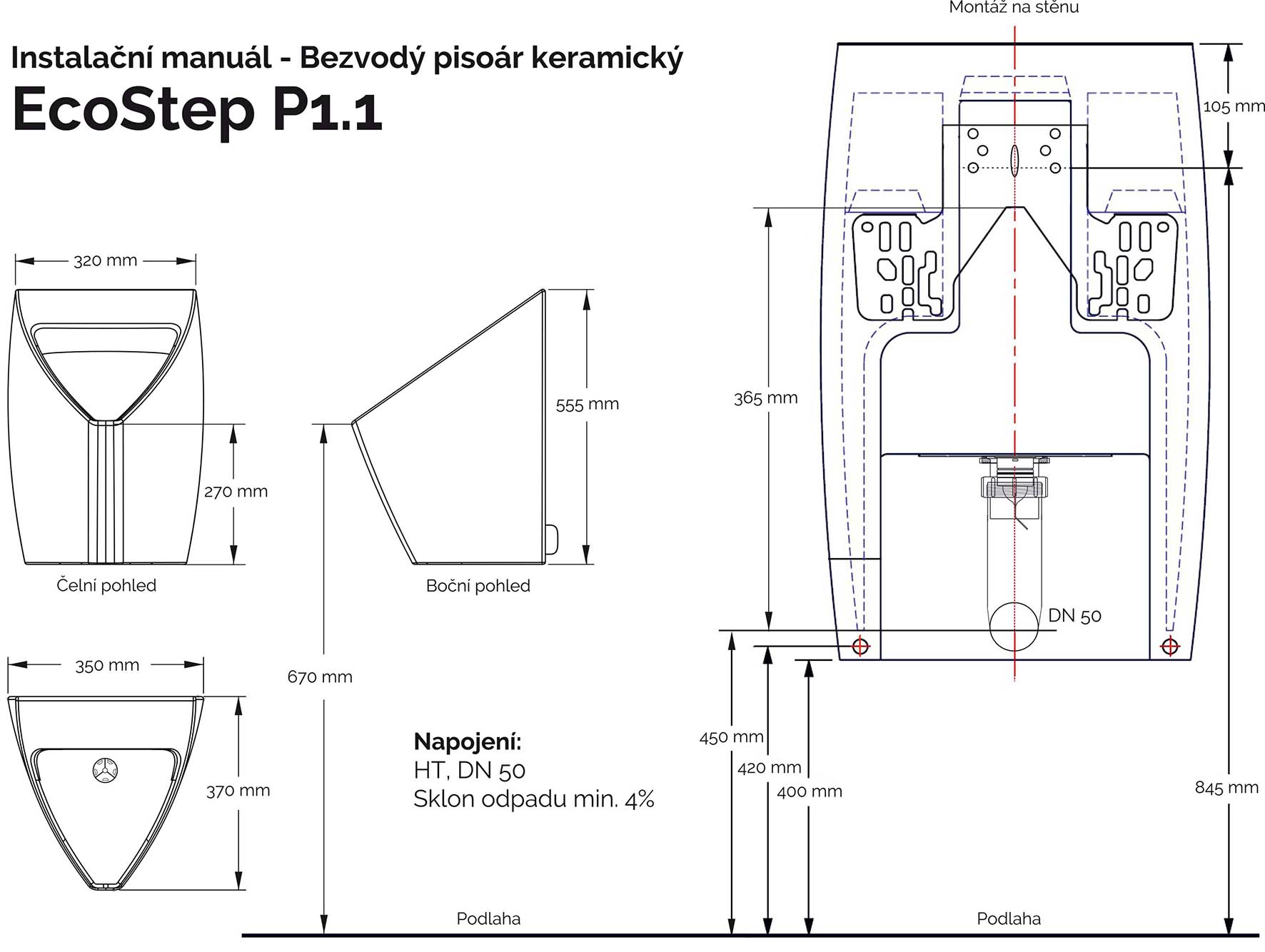 AKCE - Bezvodý pisoár ECOSTEP P1.1 - [ROK PROVOZU ZDARMA]