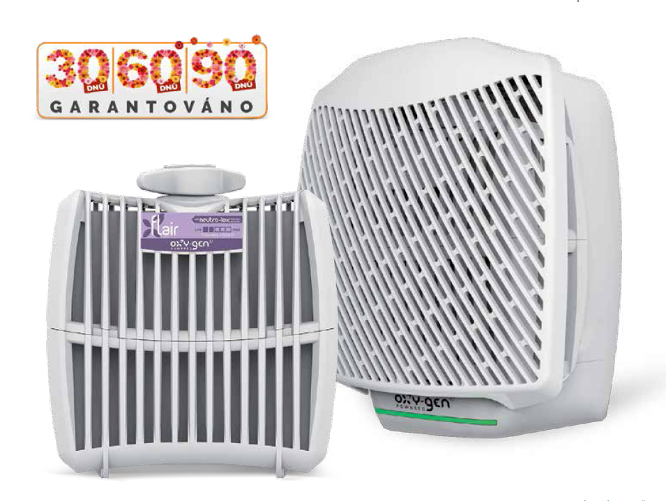Profesionální osvěžovač vzduchu Oxy-Gen PRO s volitelnou intenzitou vůně s životností až 90 dnů.