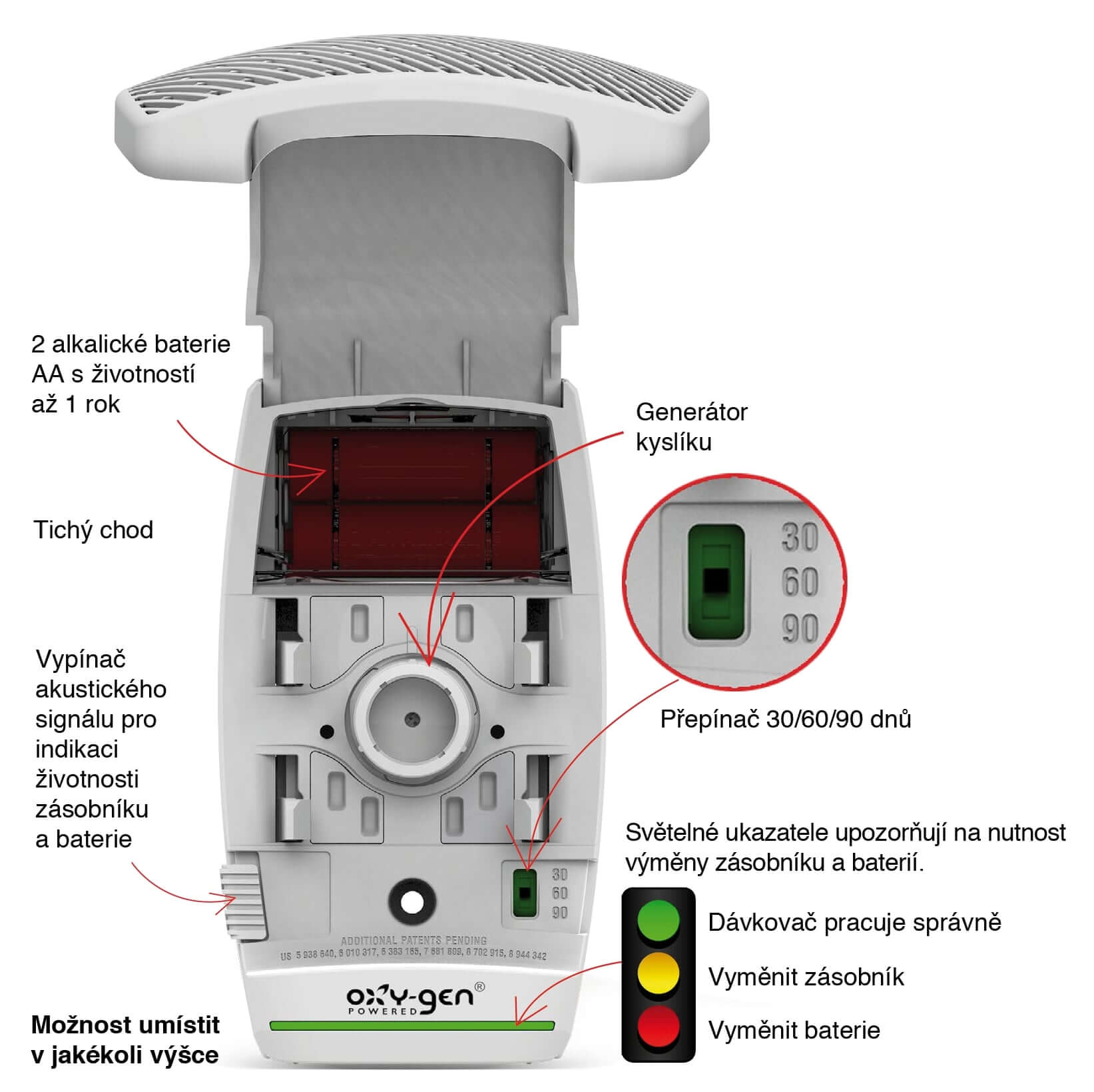 - přepínač intenzity náplně 30/60/90 dnů