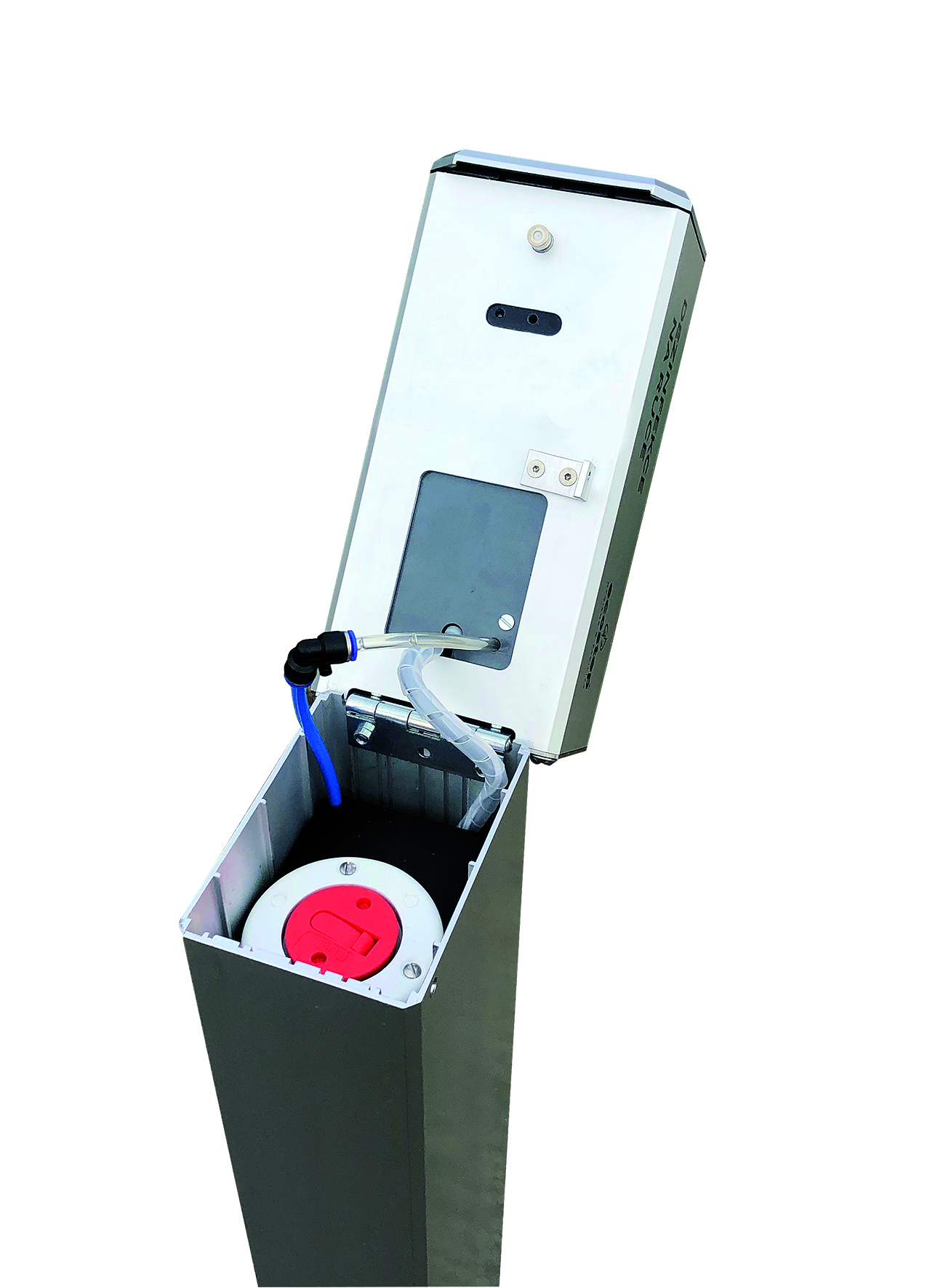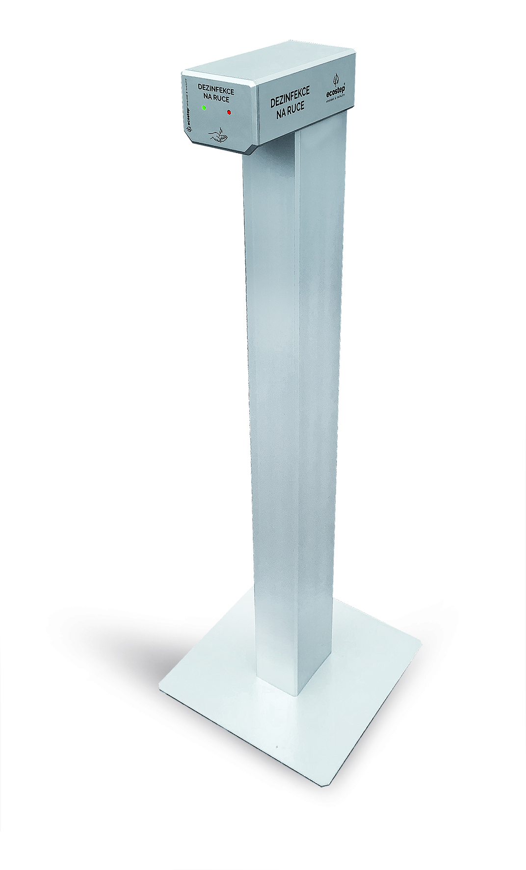 Velkokapacitní bezdotykový stojan dezinfekce EcoStep D8 je ideální na místa s velmi vysokým počtem uživatelů. V noze stojanu je objemná nádrž na 8 litrů dezinfekce. Nádrž se plní z horní strany stojanu. D8 dávkuje prostředek přímo na ruce v množství, které si sami nastavíte. Dezinfekce D8 funguje na 230V nebo na nabíjecí akumulátor. Výška stojanu je 1200 mm.